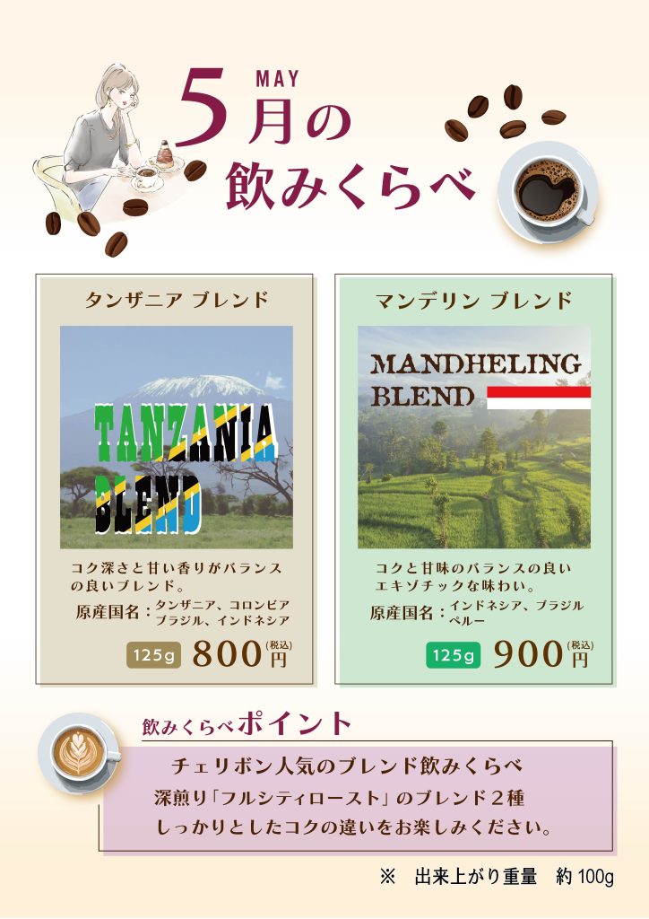5月の飲みくらべコーヒーは深煎りブレンドの2種