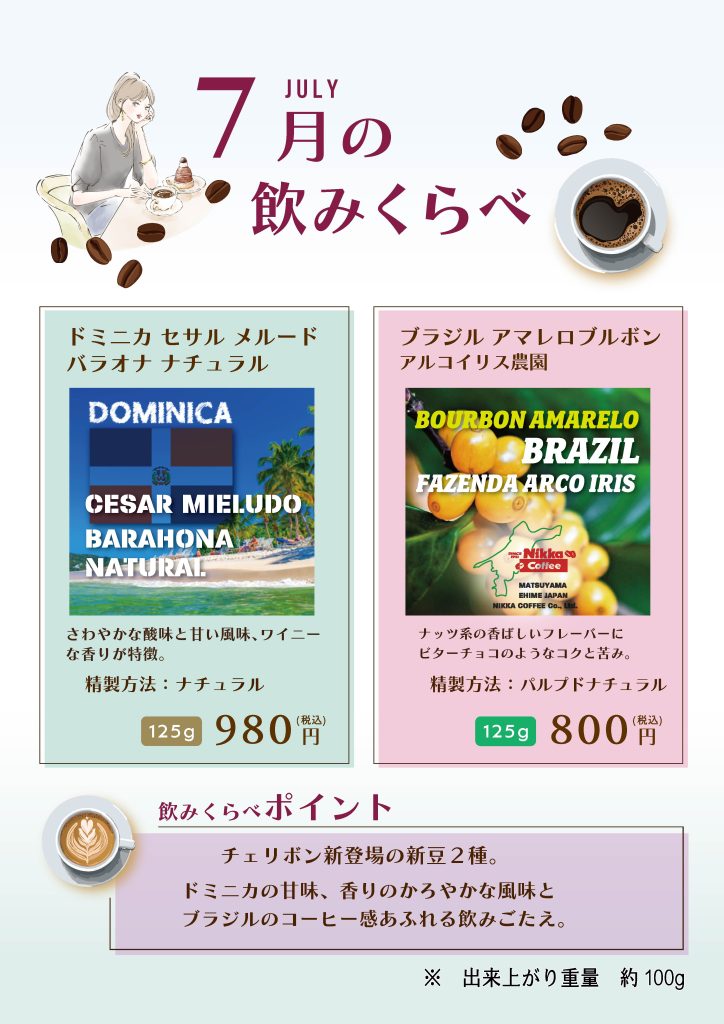 チェリボン7月の飲みくらべは新登場の豆から2種類。