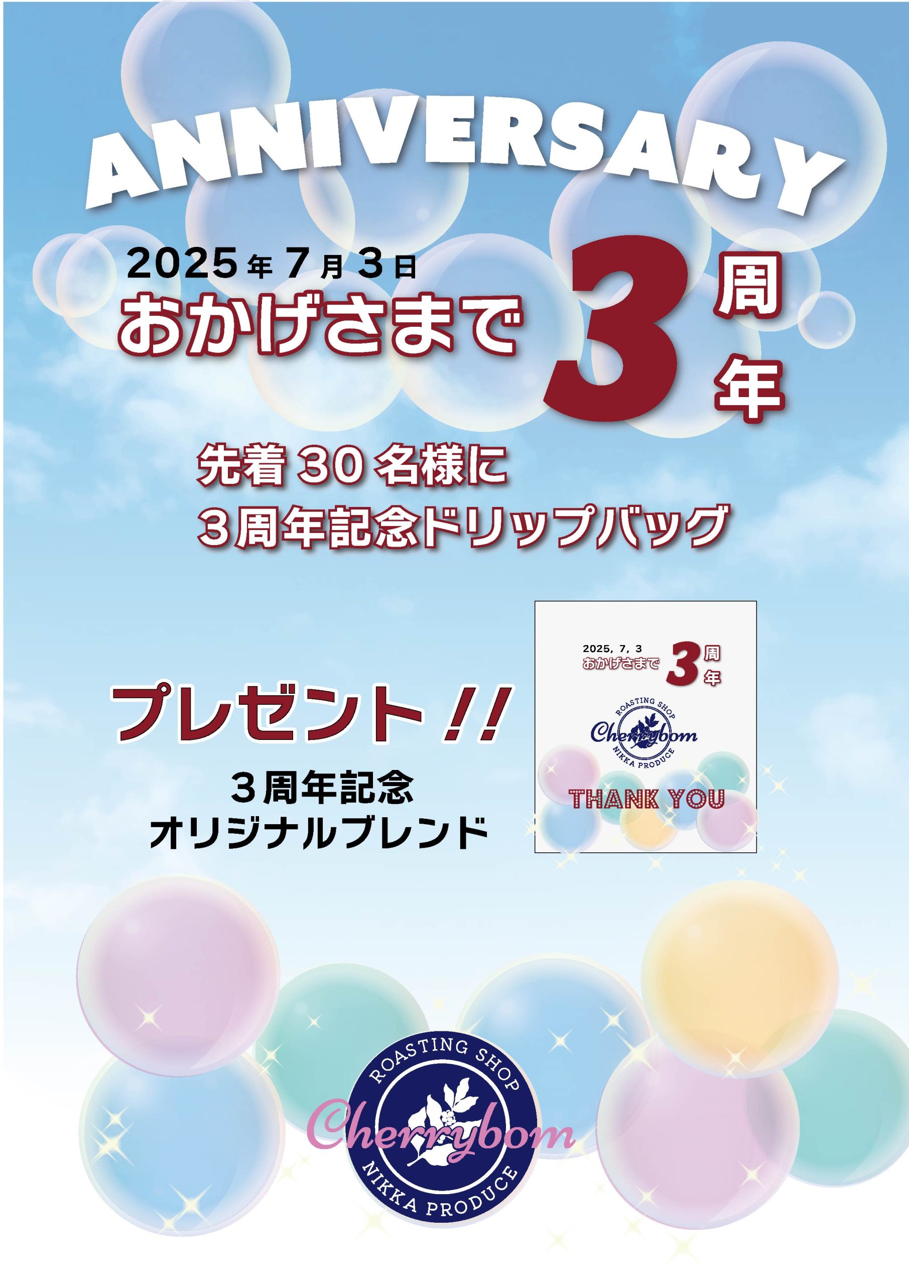 先着30名様に3周年記念ドリップバッグをプレゼントいたします。