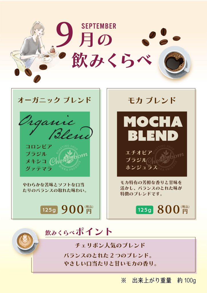 チェリボン9月の飲みくらべコーヒーは人気のブレンドから。